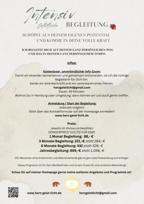 Anmeldung direkt hier über das Kontaktformular oder per herzgeistlicht@gmail.com